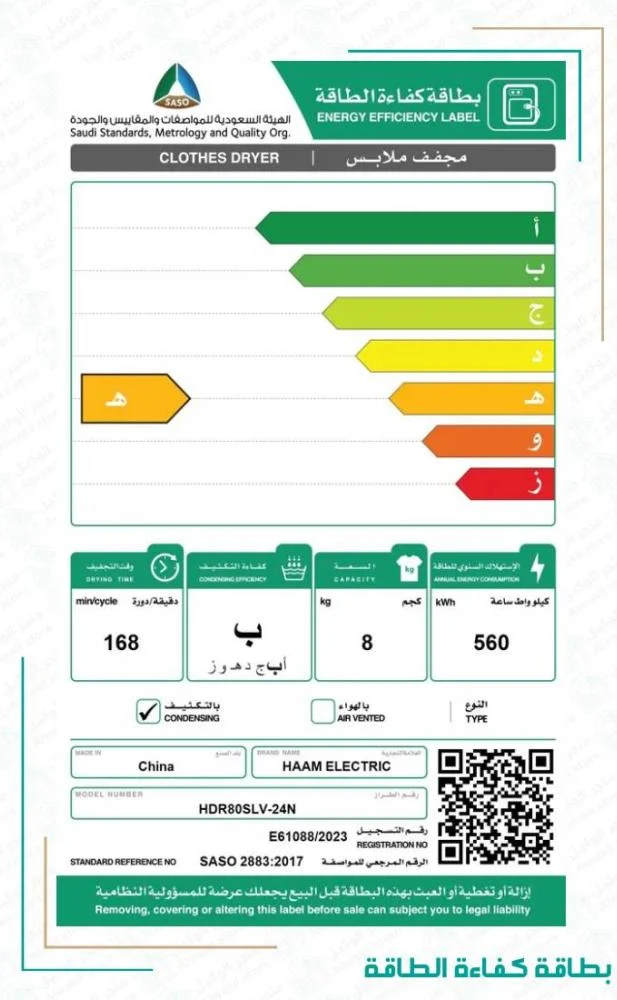 - مستوى كفاءة الطاقة: هـ (Grade H)