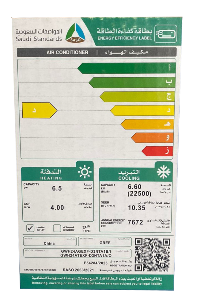 سعة التبريد: 23000 وحدة بريطانية