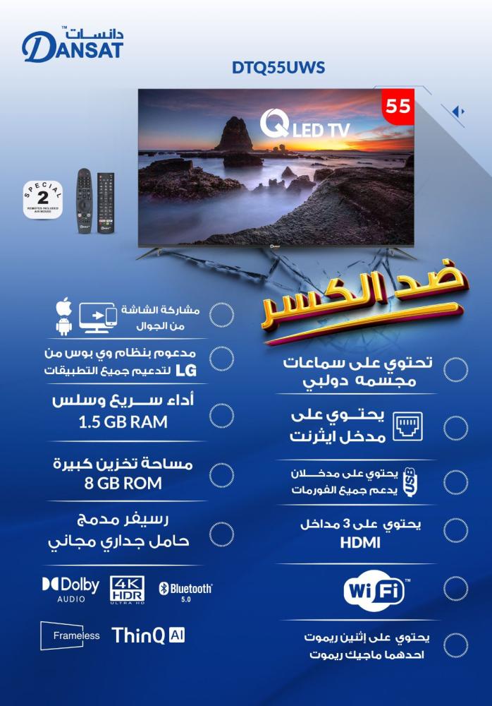 شاشة دانسات 55 سمارت فور كى كيولد ضد الكسر
