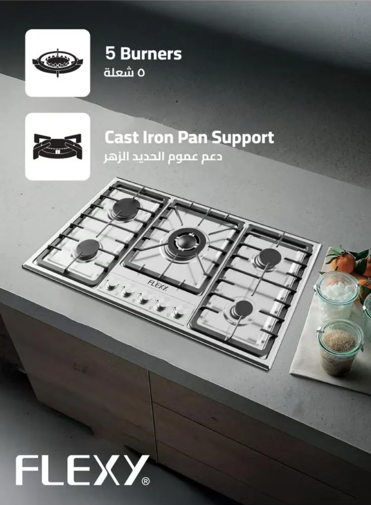 سطح فلكسي 5 عيون غاز شبك تيفال 90 سم
