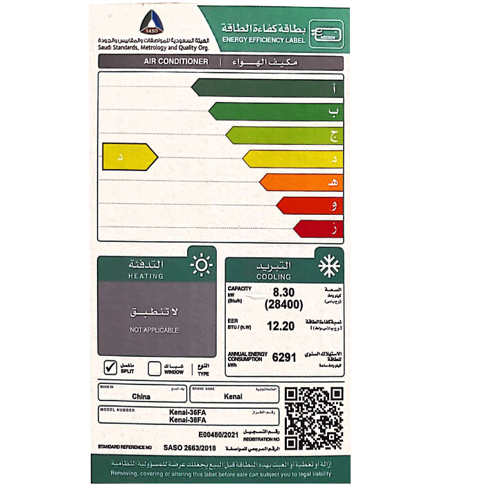 مواصفات مكيف كيناي سبليت 28400 وحدة تبريد فعلية – بارد :