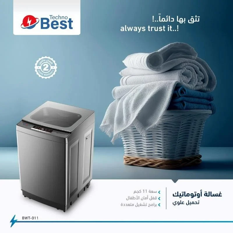 المواصفاتالعلامة التجارية : تكنو بيستالون: أبيضالسعة : 11 كيلوبرامج غسيل متعددةقفل للأماننظام المسة الواحدةغطاء علوي زجاجيلوحة عرض رقميةتدفق المياه في اتجاهات مختلفةالكهرباء 220 فولت / 60 هرتز