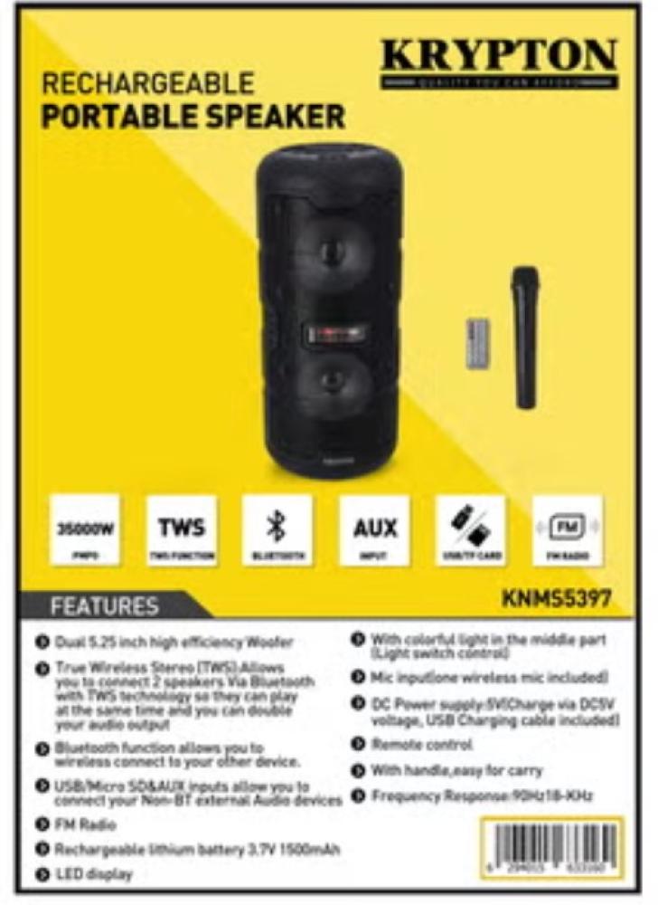 مكبر صوت محمول قابل لإعادة الشحن - أحضر إلى المنزل مكبر الصوت المحمول Krypton لإضافة المزيد من المرح إلى حفلتك. ارتقِ بموسيقاك إلى المستوى التالي مع هذه السماعة. إنه الجهاز المثالي للاستمتاع بالموسيقى المفضلة لديك بصوت عالي الجودة. يأتي مع جهاز تحكم عن بعد ومتوافق مع USB و SD وراديو FM وبلوتوث و MTC. تم تصميم هذه السماعة لتكون محمولة حسب التصميم. حجمها الصغير وتصميمها القوي. هذا يجعل من السهل عليك اصطحابه معك أينما ذهبت. مثالي لفرق الرقص ، والبروفات ، وأي مناسبة أخرى تتطلب موسيقى محمولة. كن حياة الحفلة مع نظام السماعات سهل الاستخدام هذا. انطلق لاسلكيًا ، وغني في الليل بعيدًا. يأتي هذا الطراز مزودًا بميكروفون Bluetooth لاسلكي مثالي للتمرين أو ممارسة الغناء. لا أسلاك ولا أسلاك ولا فوضى ولا سقوط. مكبر الصوت المحمول بتقنية البلوتوث PA هو مكبر صوت عالي الطاقة واسع التغطية يغطي نطاق الصوت بأكمله! تتيح إمكانية دفق الموسيقى عبر البلوتوث المدمجة والبطارية القابلة لإعادة الشحن الأداء اللاسلكي وإعداد الصوت السريع في أي مكان - في الداخل أو الخارج. تحكم في الحشود بصوت قوي كامل النطاق وخالي من التشويش لنقل جميع ترددات الصوت من الجهير العميق إلى النهايات العالية الغنية والحيوية. من الملائم توصيل شاشات العرض الخارجية و MP3 و iPod وغيرها من المنتجات. مع جهاز التحكم عن بعد ، يمكنك التحكم عن بعد. تعد محولات الطاقة المعتمدة من السلامة آمنة وتوفر طاقة كافية لتشغيل مكبرات الصوت. استمتع بالعزف اللامتناهي للموسيقى والاستماع سواء كان العزف على البيانو أو الطبل أو الحفلة أو الاجتماع أو العائلة معًا. مدمج وخفيف الوزن وسهل الحمل للاستخدام الداخلي أو الخارجي.